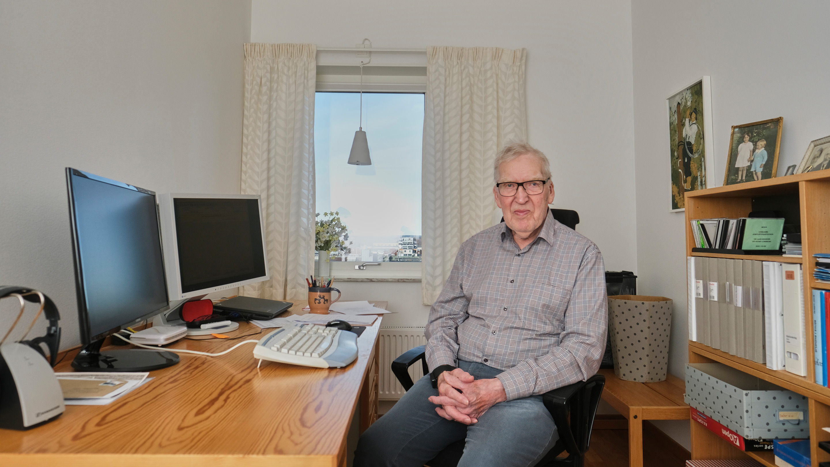 Det är inte vanligt att jag använder en vidvinkel när jag skall porträttera någon. Men storleken på rummet begränsade mina möjligheter att göra något kreativt. Så jag valde att använda ett objektiv som motsvarar 24mm i fullformat.