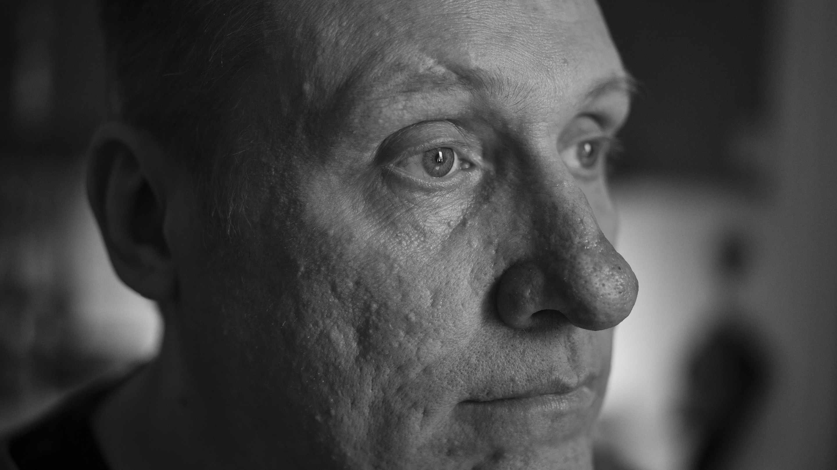 Fortsätter med befintligt ljus. F2.8 och kort avstånd ger det korta skärpdjupet. Det svaga ljuset kommer från ett fönster....