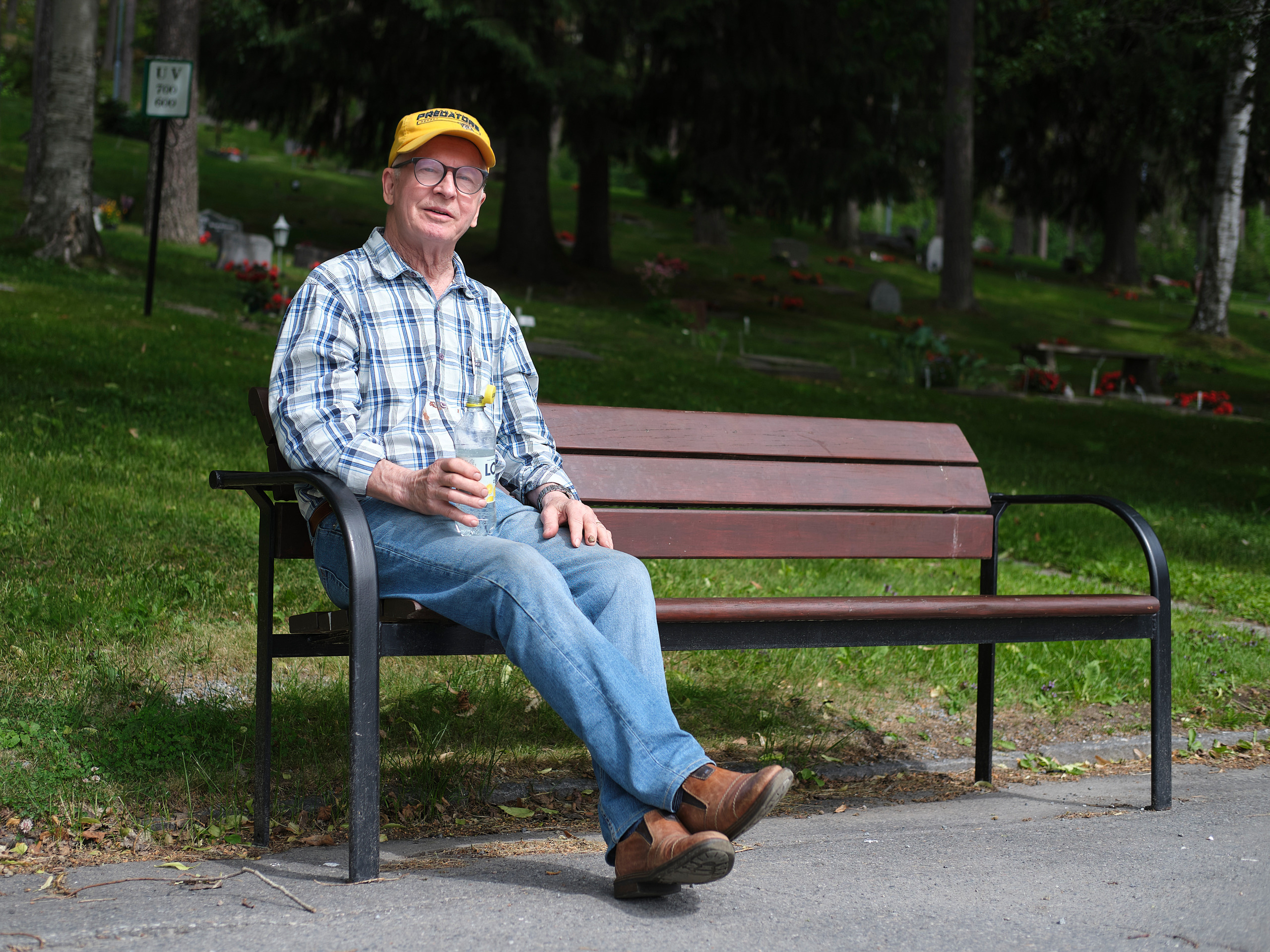 Jag och min far besökte min mors grav idag, för att plantera ett par blommor....Då passade jag på att ta en bild av min far...